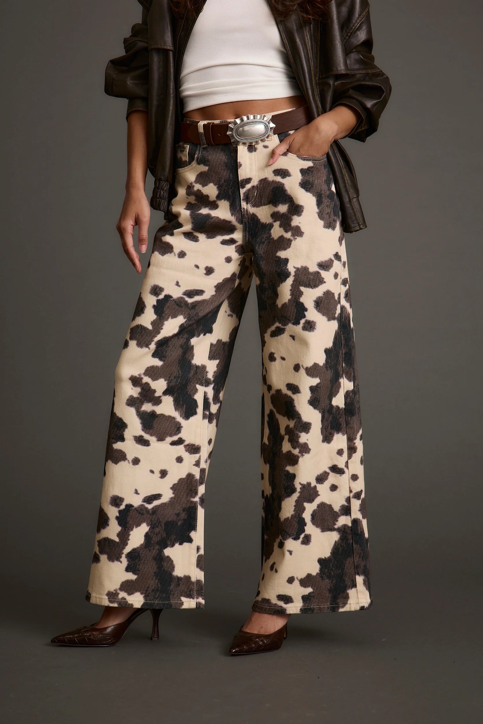 Your fall ‘fit lineup just leveled up. Our best-selling Midland wide-leg, high-rise pant is back in a fresh cowhide print that’s equal parts statement and staple. Add western inspired outwear for a look that’s country cute or channel your inner IT-girl elevated boho-chic blouses.