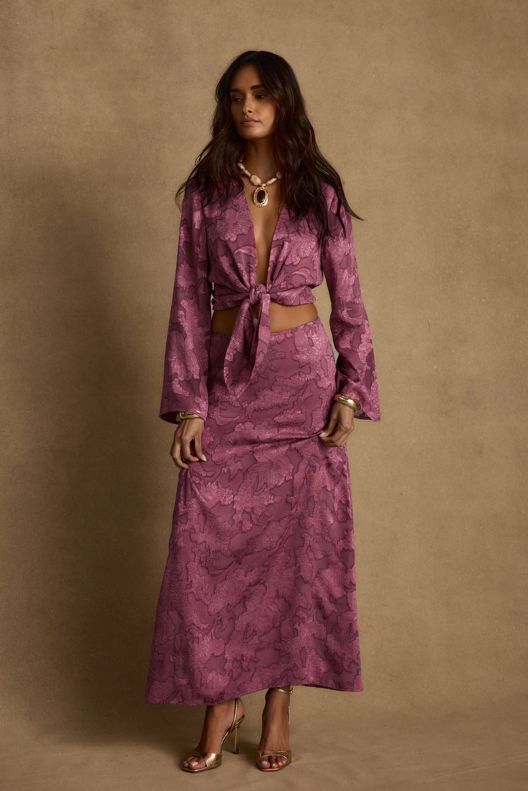 Look cute af on the dance floor with the Waverly Mulberry Maxi Skirt. The vibrant color, sexy fit, and comfortable flowy fabric make it perfect for your besties wedding celebration. Style it as a mid or low-rise for everything from bachelorette dinners to bridal-party photos or pair it with the matching Waverly Mulberry Blouse, because how often do we get a pink-on-pink moment?